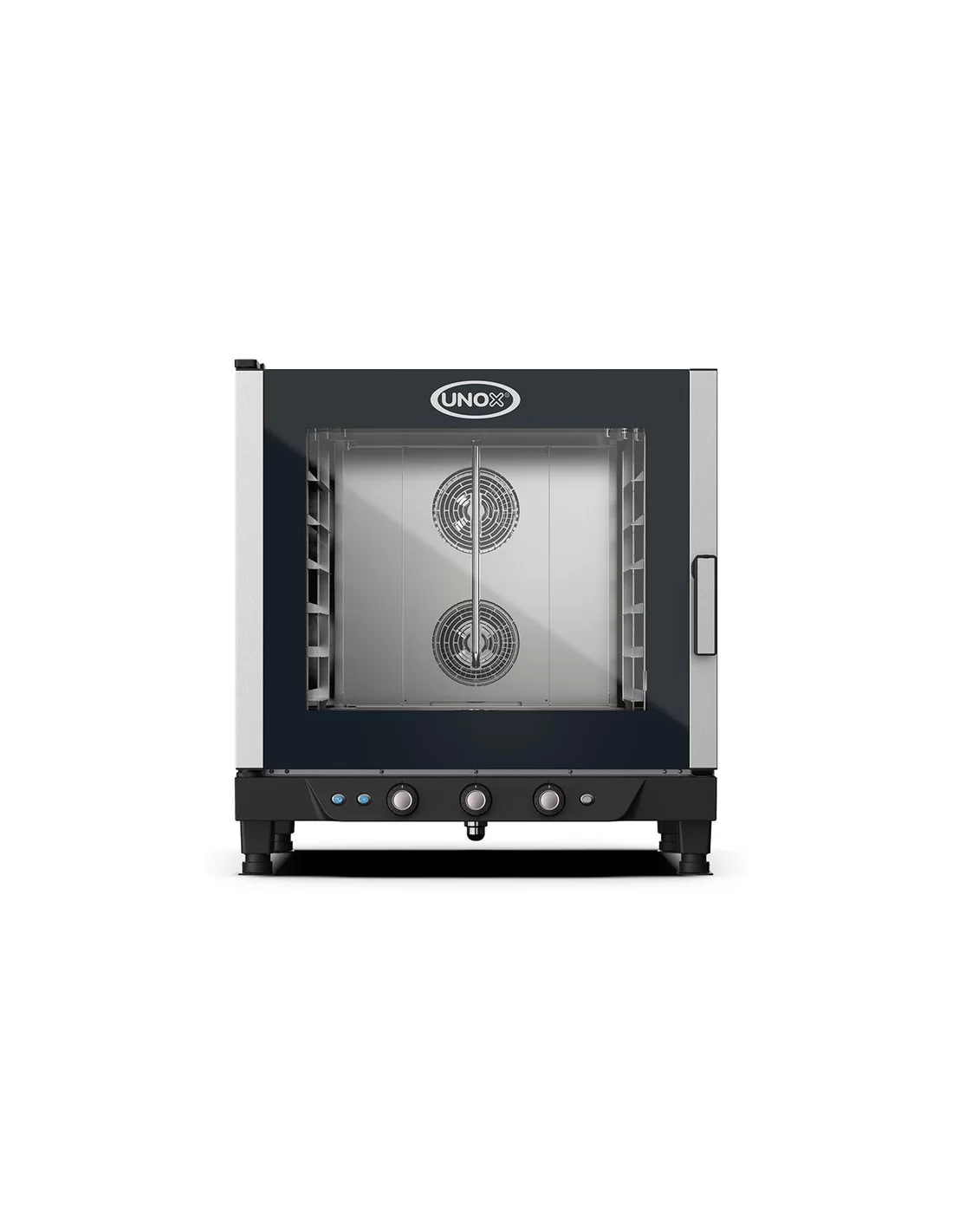 Піч пароконвекційна Unox XB 693-MP з універсальними направляючими. Ці направляючі дозволяють одночасно використовувати всередині камери приготування гастроємності GN 1/1 та пекарські листи 600х400. Таким чином, у цьому обладнанні можна готувати як гастрономічні позиції, так і хлібобулочні вироби. Представлена модель оснащена механічною панеллю керування з ручним регулюванням часу приготування, температури та ступеня парозволоження. Рекомендується до застосування у пекарнях та кондитерських, а також у супермаркетах з кухнею.